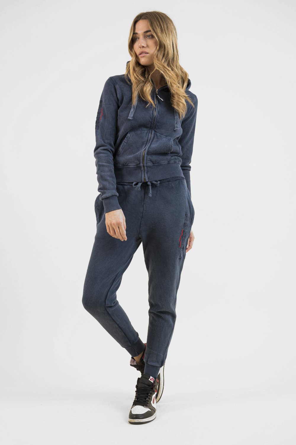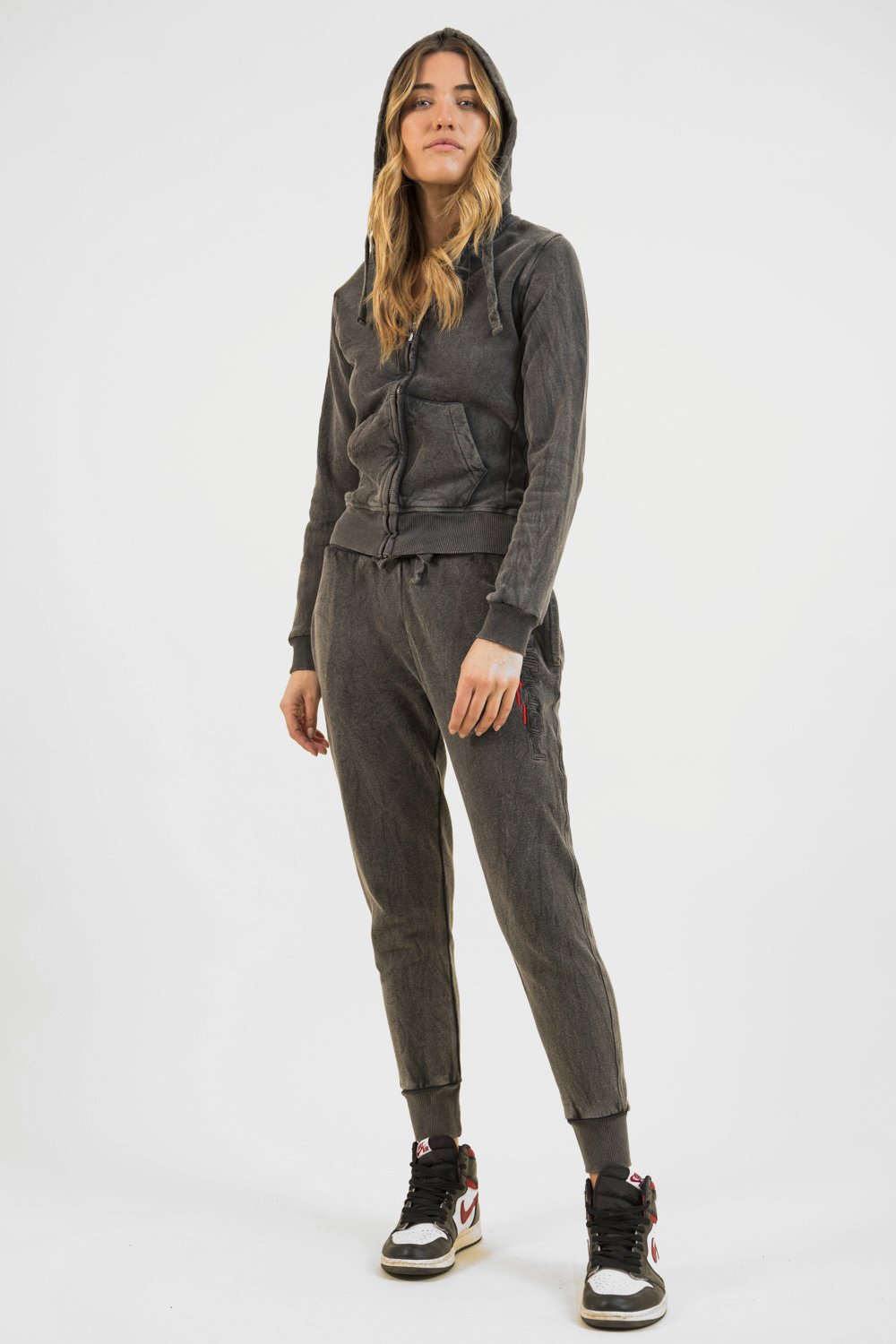 FELPA FULL ZIP "STONE WASHED" DONNA